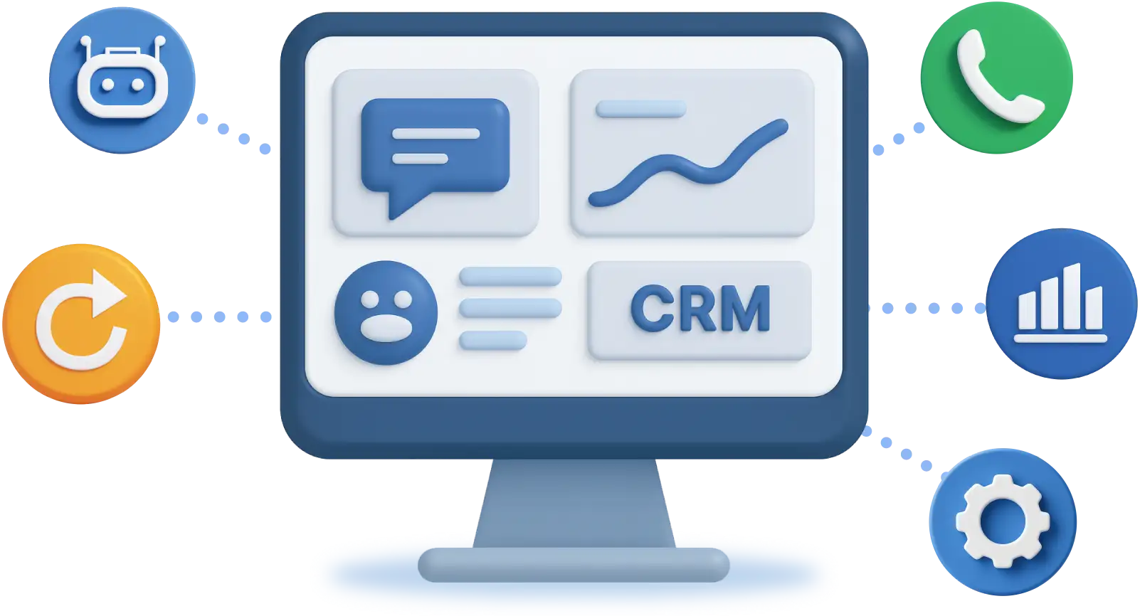 Conecta canales, centraliza tu CRM y activa bots con IA entrenados según tu negocio.